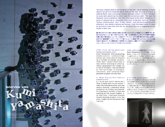 さらに、あの「奇跡体験アンビリーバボー」や「金スマ」で紹介されてにわかに脚光を浴びた、ニューヨーク在住のシャドーアーティスト、山下工美さんに、雑誌メディアとして初めてCOOLが独占インタビューに成功!こちらもニューヨークのスタジオでの臨場感たっぷりのインタビューと写真を一挙公開です!