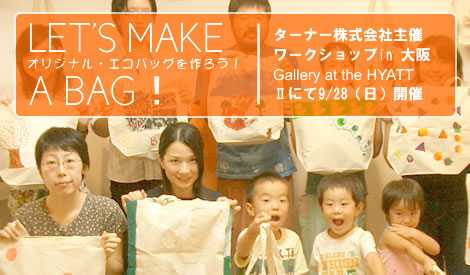 28日(日)午後2時より、Gallery at th Hyatt II にてターナー色彩株式会社主催によるオリジナルエコバッグを作るワークショップを行います。