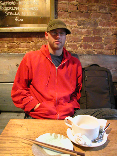 この日、公開を目前に控えた映画『アラキメンタリ』の監督Travis Kloseと待ち合わせをしたのは、彼が今回東京滞在中の活動の拠点を置いている高円寺だった。アソシエイト・プロデューサーであるMasaさんと一緒に現れた彼は、開口一番、日本語で「はじめまして!」と笑顔で挨拶をしてくれた。焼酎を飲み過ぎて二日酔いの彼は、日本文化が大好きだと言う。彼らが連れて行ってくれたのは、どこかしらニューヨークの「ヴィレッジ」を思い出させる雰囲気のカフェであった。3月5日の公開に向けて、現在各メディアからのインタビュー漬けの毎日。「大変ですね」というと「楽しい」とまた笑顔で答えてくれた。彼は日本語を少し話す。今まで受けてきたインタビューも答えられるところはなるべく日本語で答えてきたと言う。難しい部分はMasaさんがカバーしているのだそうだ。