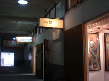 「莫干山路50号 倉庫群(以下M50)」は上海駅より歩いて15分ほどの距離にあり、蘇州川という澱んだ河川の沿岸に位置する。ここはかつての紡績工場跡地で、2002年から市政府の指導により広大な空間を利用した現代アートスペースとして変貌を遂げた。かつては「春明芸術産業園」という名称だったM50は、凄まじい勢いで変貌し続ける上海の開発地区の1つであり、絶え間なく稼動し続ける工場施設と共存している。