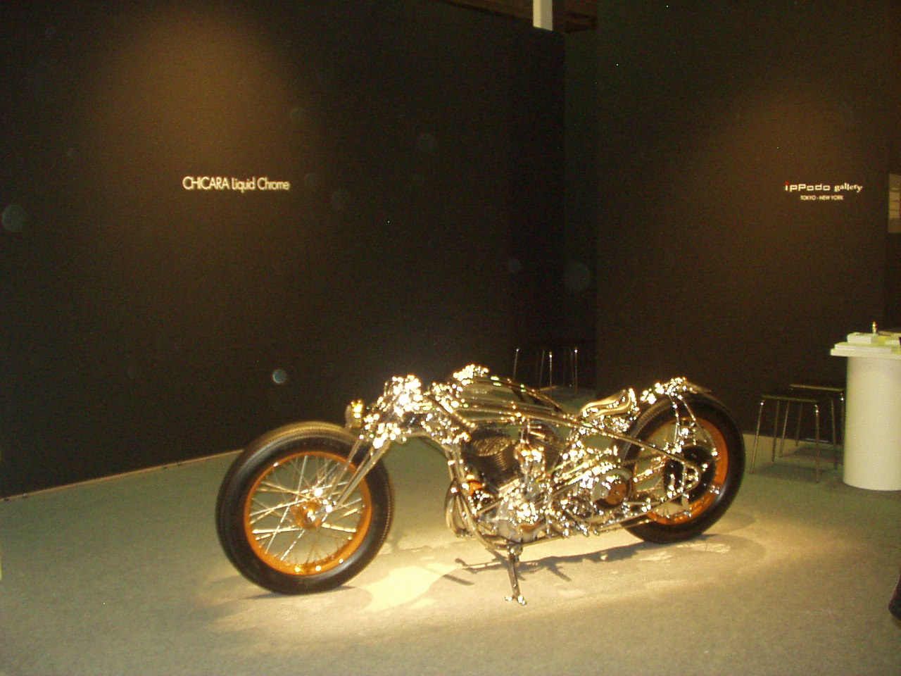 少年時代からバイクの魅力に取り憑かれた Chikaraは、16歳の時に大事故に遭い、内臓破裂という瀕死の重傷を負った。しかし一命をとりとめてからもバイクから離れることができず、ますますバイクの世界にのめり込んでいった。奇跡的に復帰したときから自分の存在意味や使命に対する自身への探求が始まったという。「誰にもできない自分だけにしかできないことで自分を表現し、自分の存在を世界中の人に知ってほしい」そのひとつの想いが完全ハンドメイドの美しいフォームを放つ芸術作品となって、今回のニューヨークで初披露された。ACAFでの展示と伴い Ippodo Galleryにて初の個展も2009年1月31日まで同時開催されている。